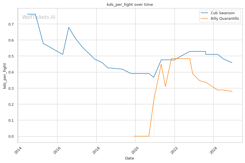 The main factor that favors Swanson is: - Power Striking: Swanson's 0.4578 Knockdowns per Fight reflects his one-shot stopping power compared to 0.2702 for Quarantillo. If he can land cleanly, he's more likely to end the fight suddenly.