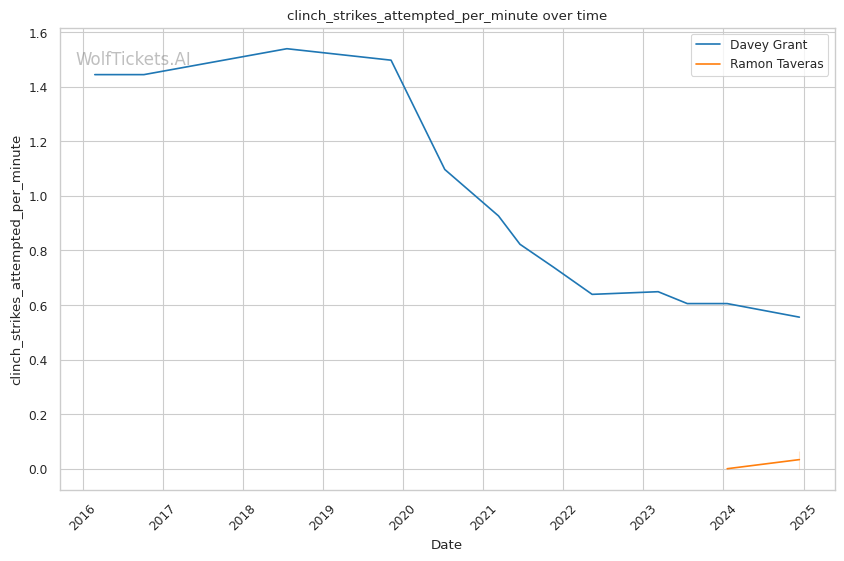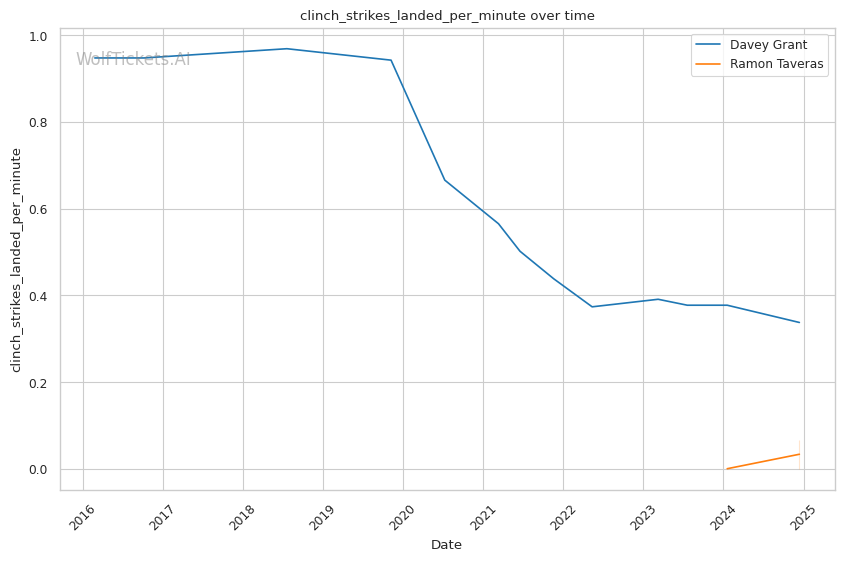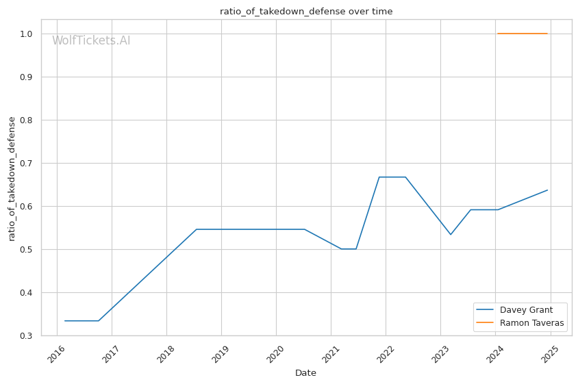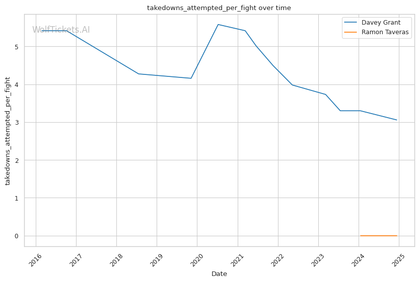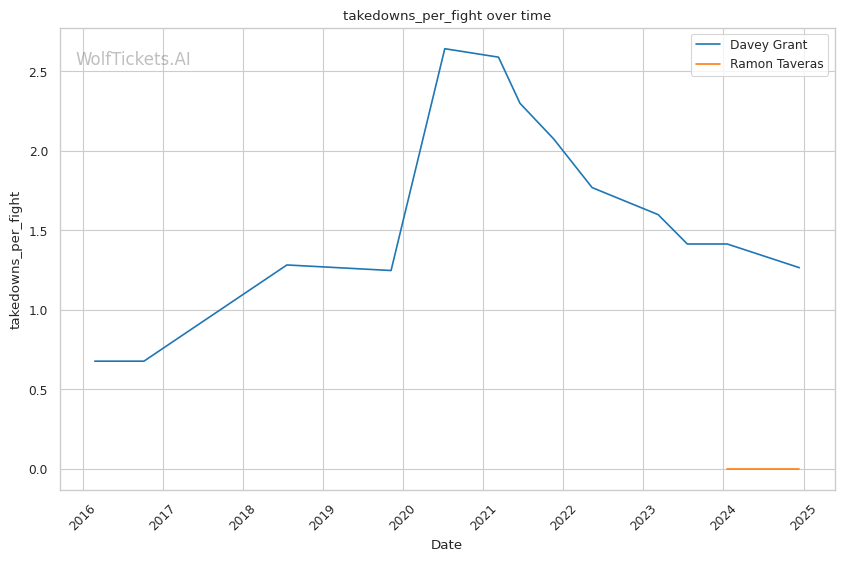 Recent Takedown Activity: Grant averaging 1.57 takedowns per fight recently, showing strong wrestling.