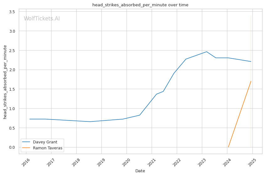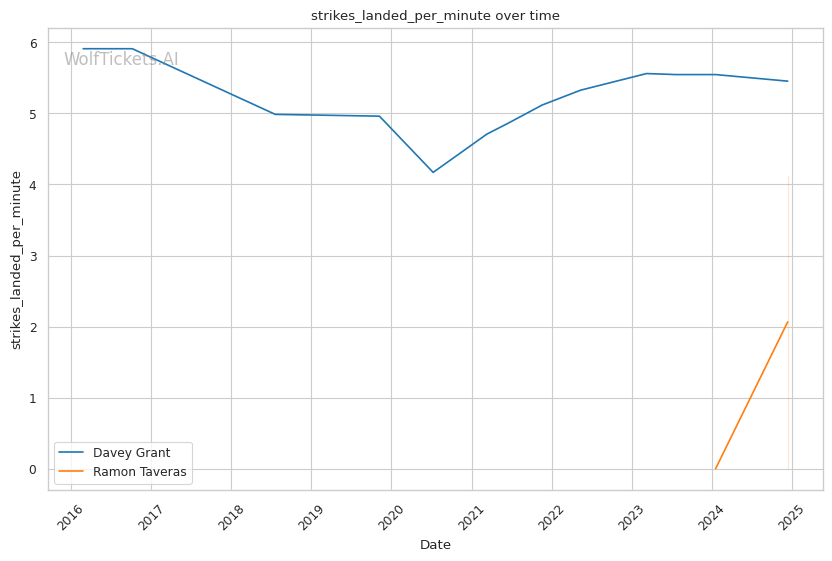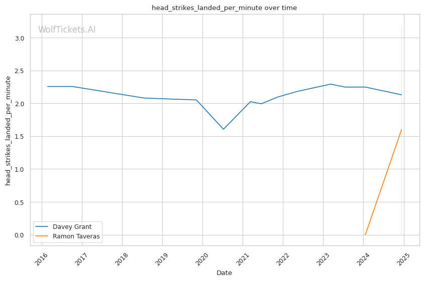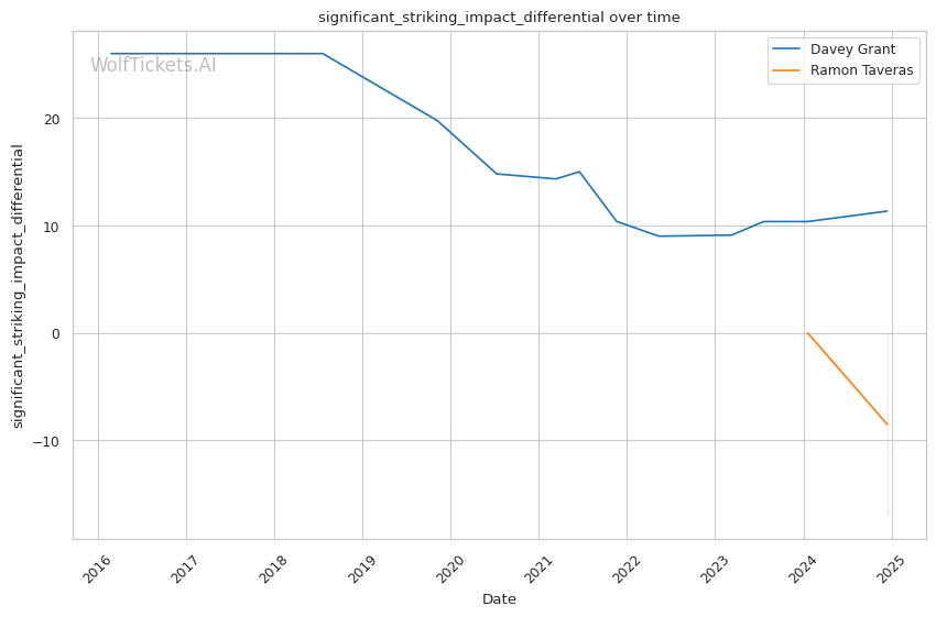 Significant Striking Metrics: Grant's strong significant striking differential and impact numbers, including landing over 5 per minute.