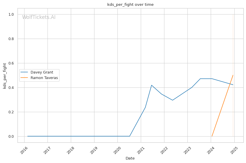 In summary, this shapes up as a competitive fight with Taveras' power and potential against Grant's experience and craftiness. WolfTicketsAI leans towards the veteran Grant being undervalued as an underdog, but the small sample on Taveras adds uncertainty. Given Grant's improving striking, submission danger, and potential edge if the fight goes long, the model sees value on him at underdog odds in what should be a closely contested scrap.