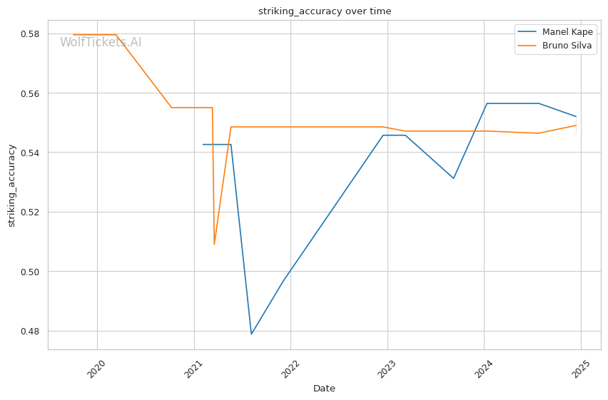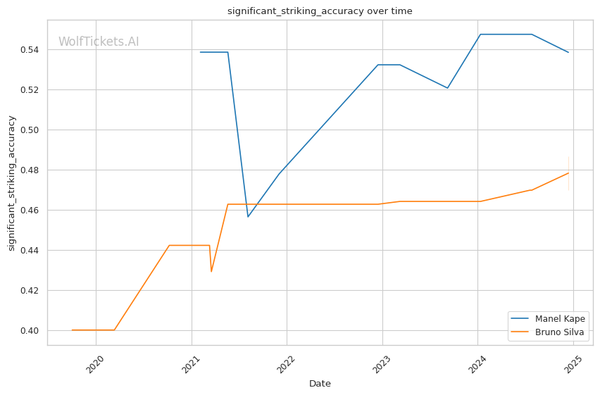 However, some factors do slightly favor Silva, including: - Recent Win Percentage: Silva has won his last 4 fights, while Kape is 2-2 in his last 4. Recent momentum is on Silva's side. - Recent Significant Striking Defense Percentage: Silva avoids 65.6% of significant strikes, slightly better than Kape's 65.3%. He's no defensive slouch himself.