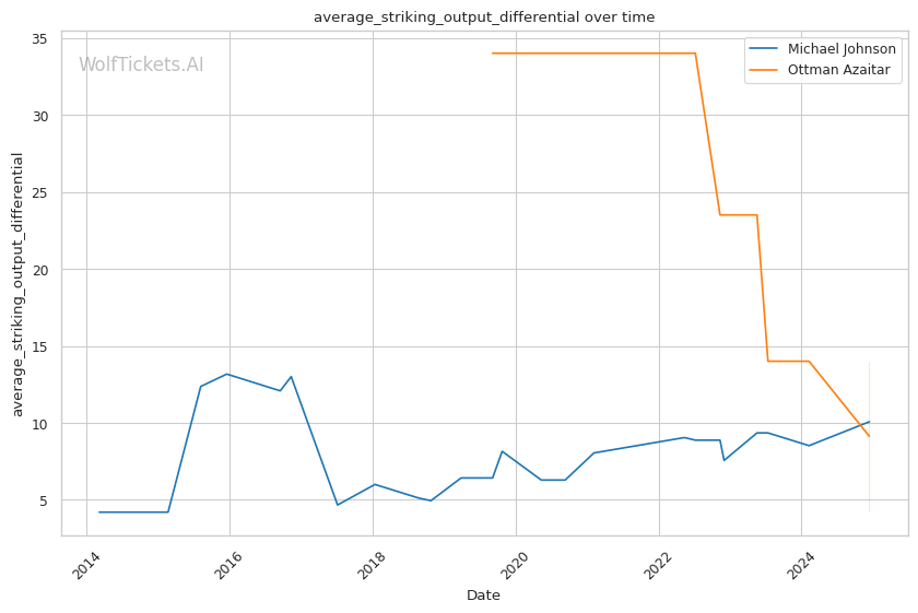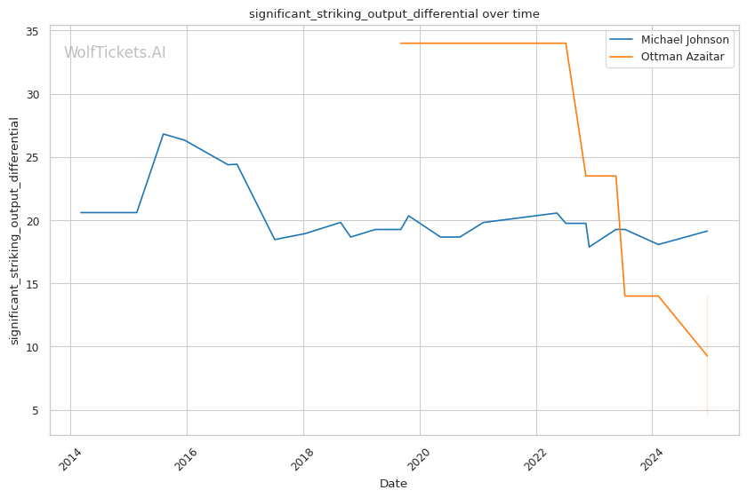 While Azaitar does have the edge in some categories like knockdowns per fight and striking accuracy, the model seems to favor Johnson's overall striking differential and defensive skills, combined with his experience and betting odds as the favorite.