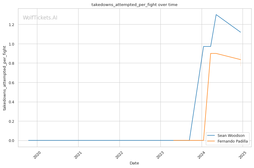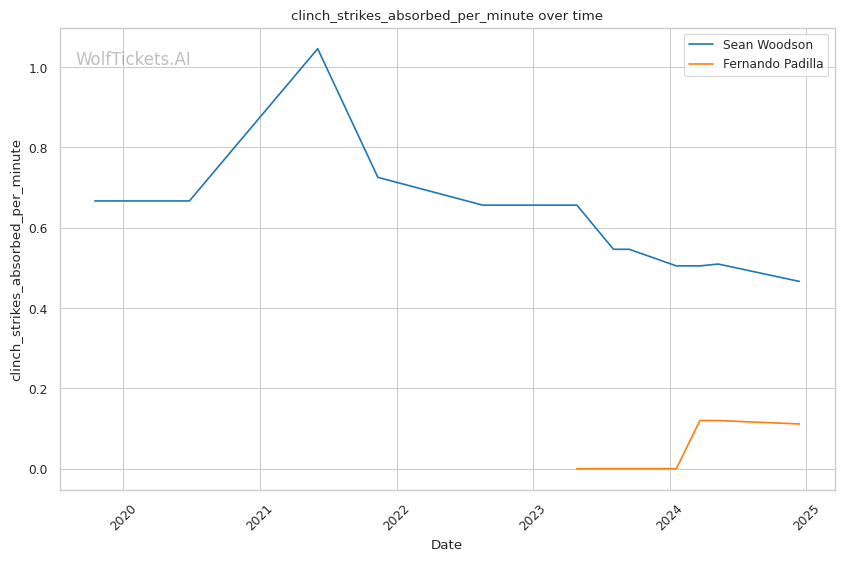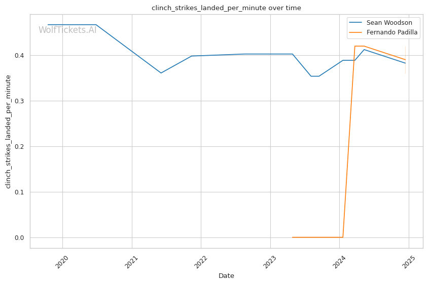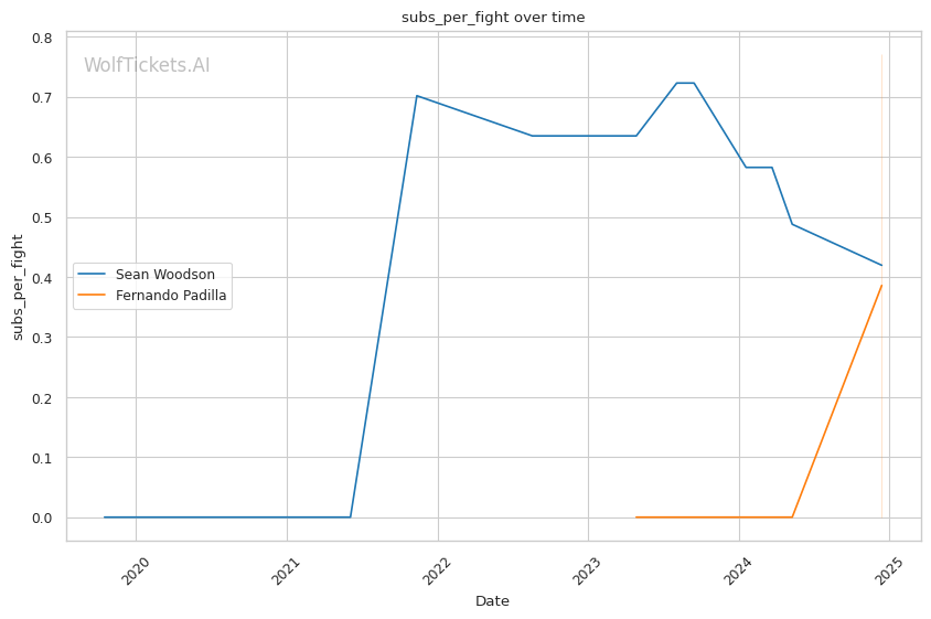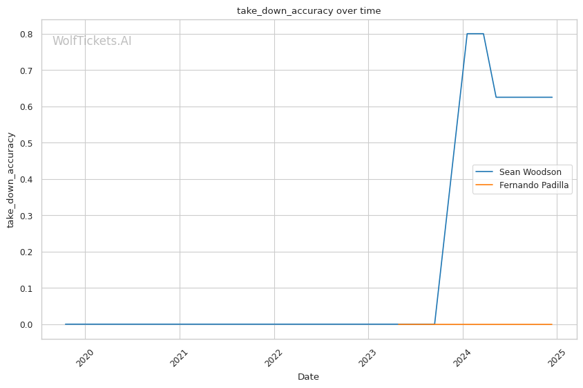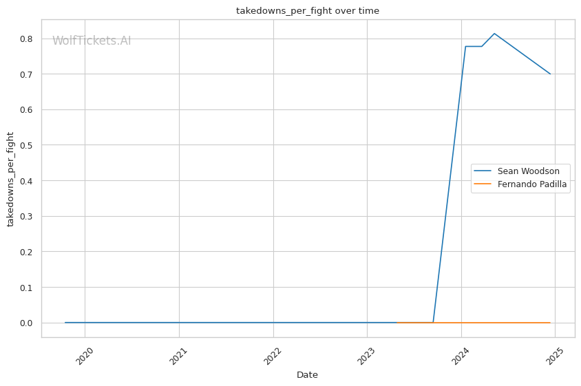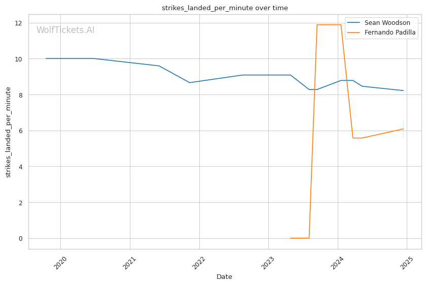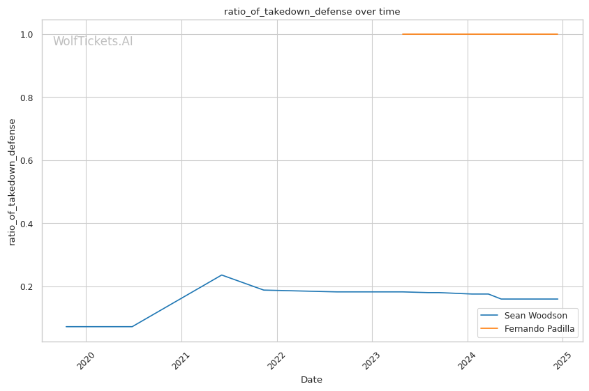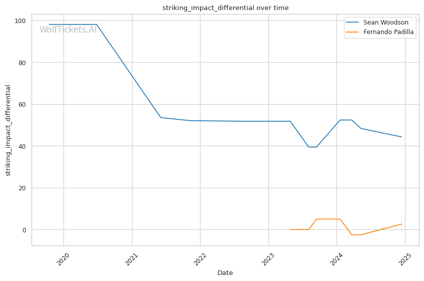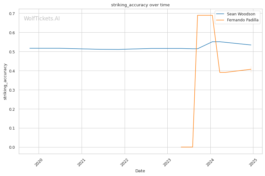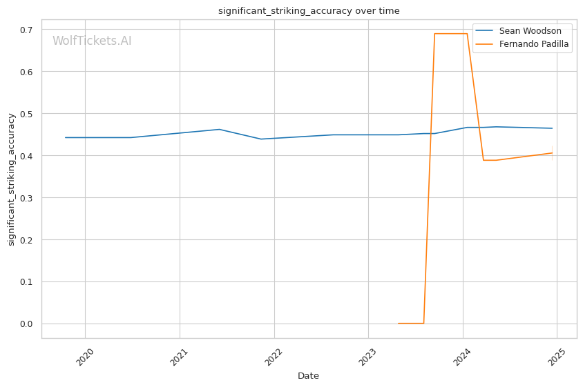 Striking Accuracy: Woodson's striking accuracy (44.69% significant strike accuracy) is higher than Padilla's (42.28%), indicating his ability to land precise strikes consistently. This could be decisive in a striking-heavy contest.