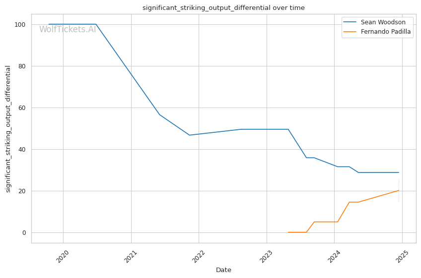 WolfTicketsAI's prediction of a Sean Woodson victory is based on his superior striking accuracy, defensive capabilities, and recent form. However, Padilla's versatility and finishing ability cannot be overlooked.