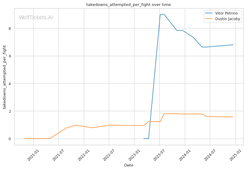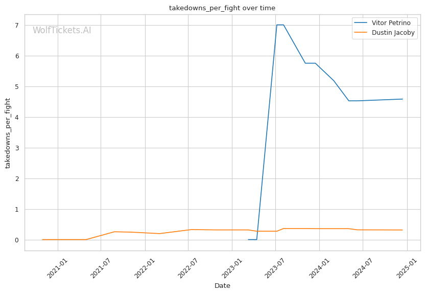 Recent Takedowns Attempted per Fight: Petrino's wrestling could be a big factor, he shoots for 7.67 takedowns per fight recently.