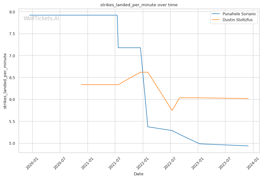 Soriano's Aggressive Style: Soriano's aggressive style and high output (4.9357 strikes landed per minute) could be a double-edged sword, providing opportunities but also exposing him to counter-strikes.