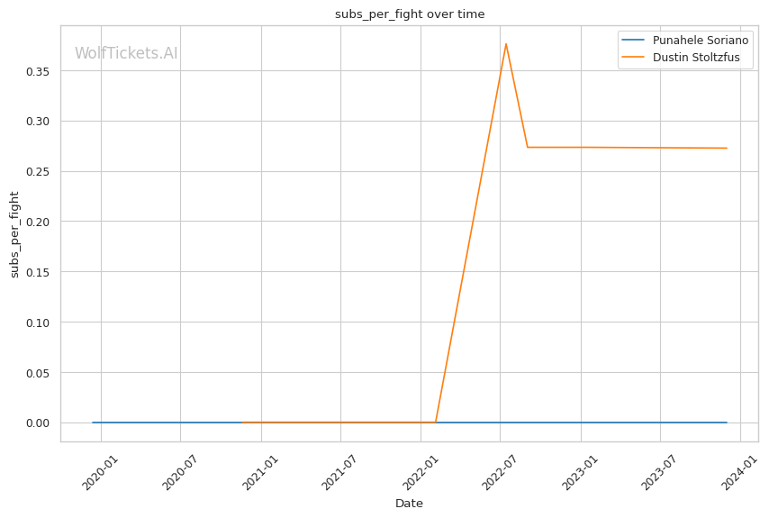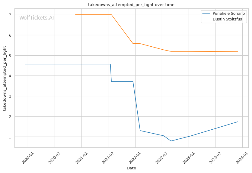 Dustin Stoltzfus, entering this fight with 14 wins and 5 losses, presents a contrasting style. He has a more balanced approach with a decent takedown game (1.6309 takedowns per fight) and an inclination towards submissions (0.2718 submissions per fight). His recent performances, however, mirror Soriano's struggles, with a recent win percentage of 0.33. His last fight, a swift loss by KO/TKO to Abus Magomedov, also raises concerns about his striking defense, particularly against powerful strikers.