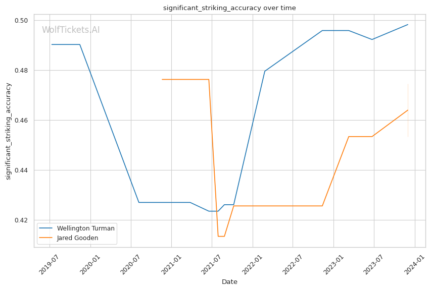 | Significant Striking Accuracy | 49.82% | 47.45% | 46.07% | |