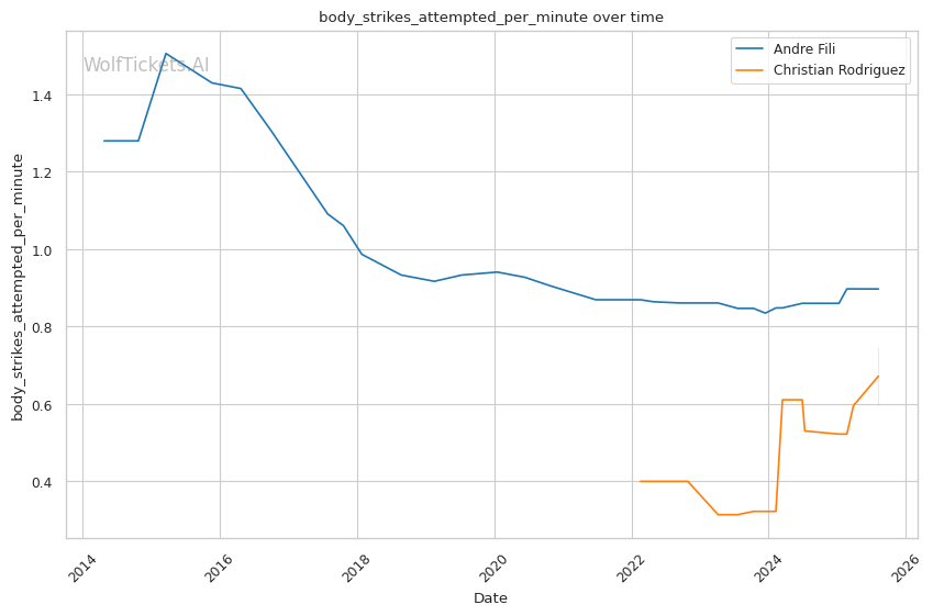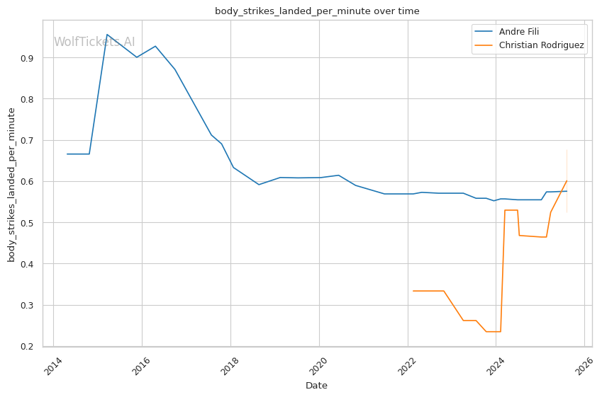 | Body Strikes Landed per Minute | 0.575 | 0.677 | 0.775 | |