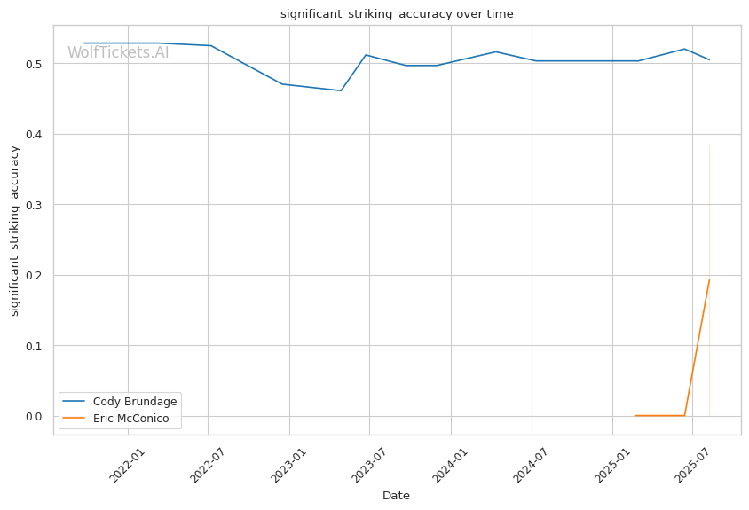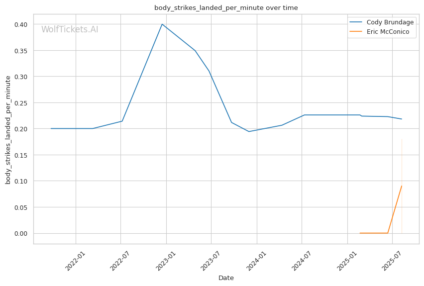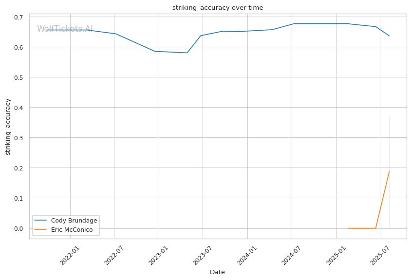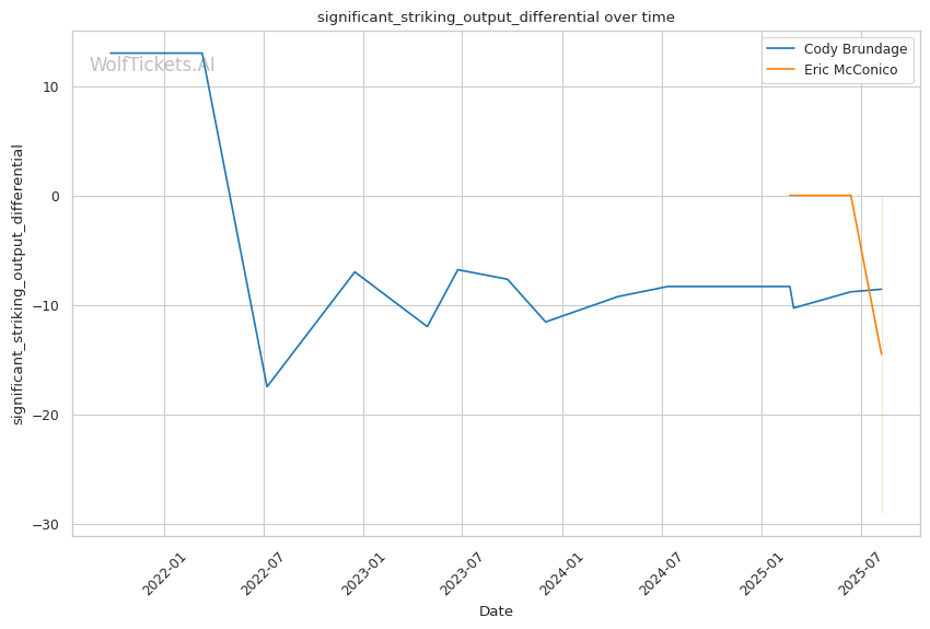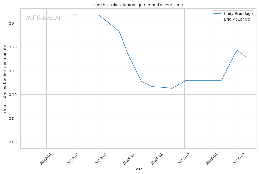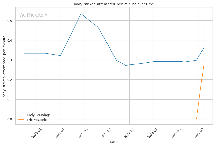 Mid-fight adjustments will be crucial for McConico. He needs to find his offensive rhythm and use his reach to keep Brundage at distance. However, his low output suggests he may struggle to build momentum even if he finds success.