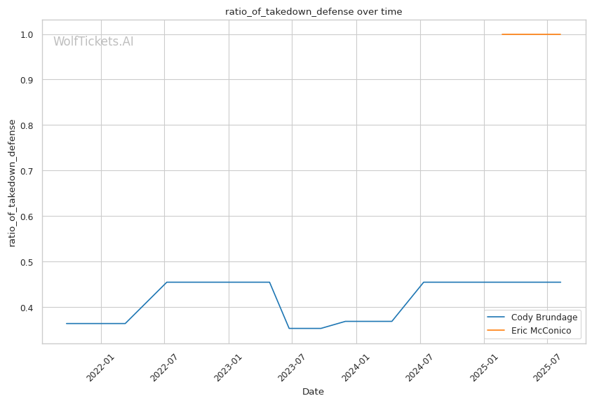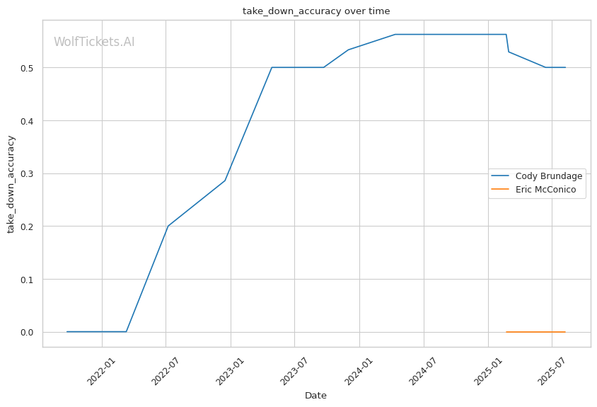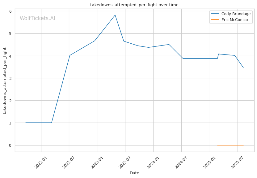 Early rounds favor Brundage's explosive entries and takedown attempts. McConico's hesitancy could allow Brundage to establish his wrestling game and control positioning. If Brundage can secure early takedowns, his ground control could accumulate rounds.