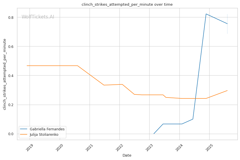 This matchup heavily favors Fernandes's evolved counter-striking game against Stoliarenko's predictable entries. Fernandes's jab-to-clinch transition will be particularly effective against Stoliarenko's false entry striking patterns. When Stoliarenko feints forward, Fernandes can time her intercepting knee strikes or capture her head in the double collar tie.