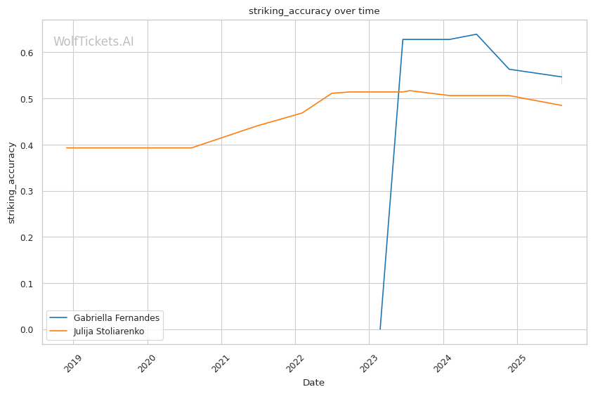 Championship rounds heavily favor Fernandes, whose conditioning has improved while Stoliarenko has shown vulnerability to sustained pressure in later rounds, as evidenced in her losses to Yana Santos and others.