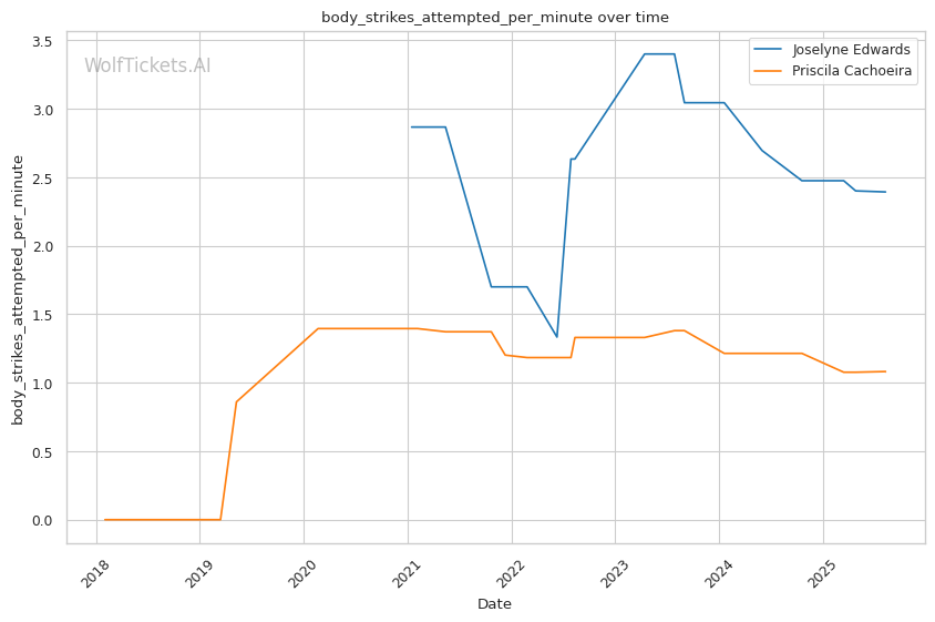 | Body Strikes Attempted per Minute | 2.393 | 1.087 | 1.247 | |