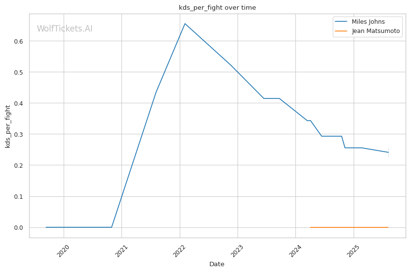 WolfTicketsAI has struggled with Johns recently, going 1-2 in his last three predictions with incorrect calls on both the Lima and de Andrade fights. The model showed better accuracy with Matsumoto, correctly predicting his win over Katona but missing on the Font upset. This mixed recent performance suggests some uncertainty in both fighters' predictive patterns.