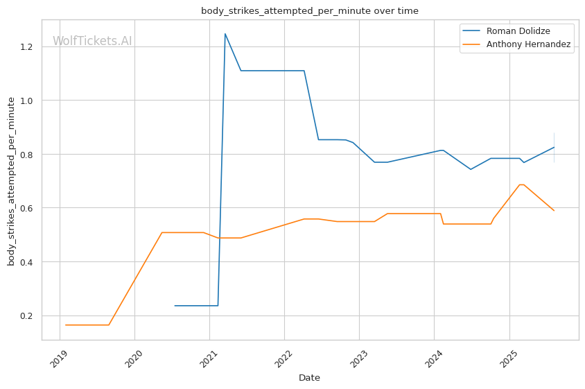 The key technical battle will be whether Dolidze can land his power shots before Hernandez establishes his grinding pace and pressure. Hernandez's 1-3-2 combination could also disrupt Dolidze's timing for the overhand right, while his takedown attempts force Dolidze into grappling exchanges where his predictable striking becomes less relevant.