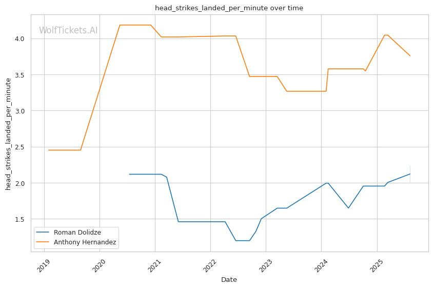Championship rounds heavily favor Hernandez's conditioning and grinding approach. His ability to maintain high-output grappling while Dolidze's confidence and power typically diminish in extended exchanges gives him a significant late-fight advantage.