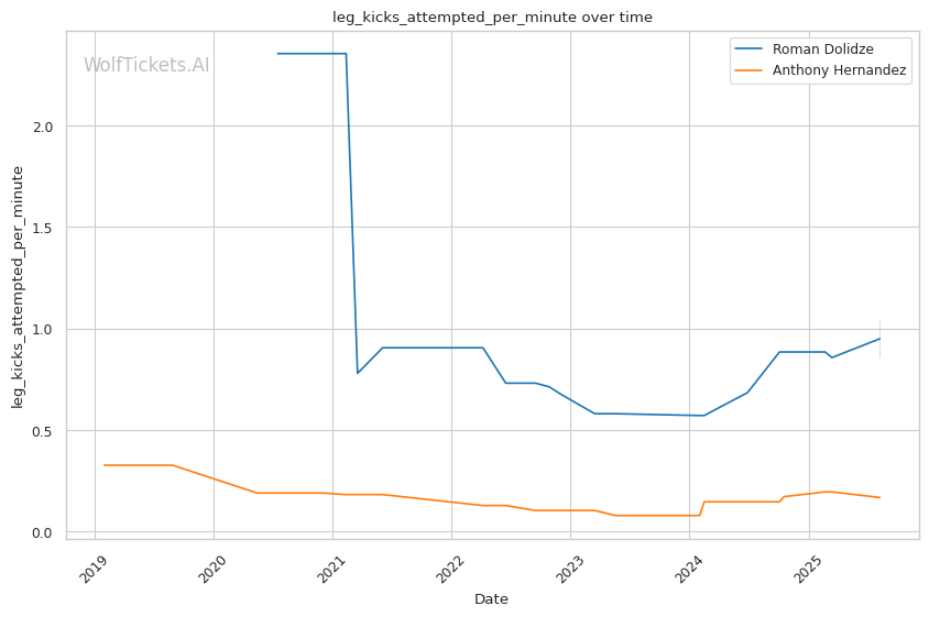 Despite Dolidze's dangerous early-fight power and Hernandez's documented vulnerability in opening exchanges, WolfTicketsAI's prediction favors Hernandez's grinding, pressure-based approach to overwhelm Dolidze's one-dimensional striking over the course of the fight. The model's perfect record on Hernandez combined with his superior cardio and specialized ground control system should prove decisive if he can survive the early storm.