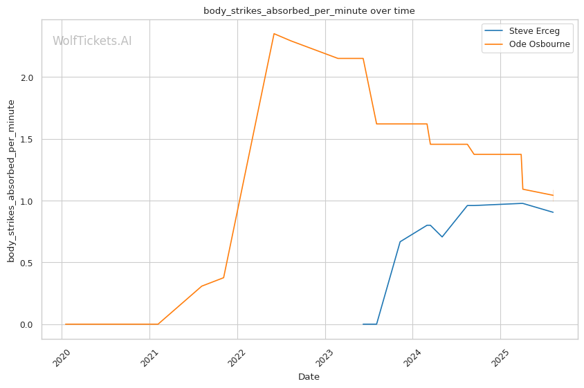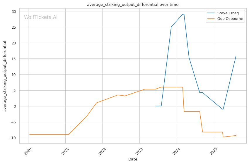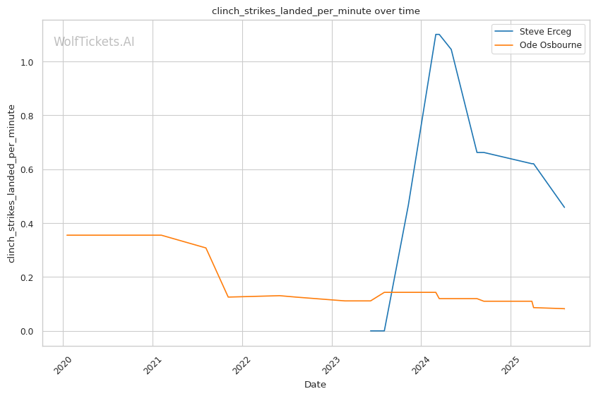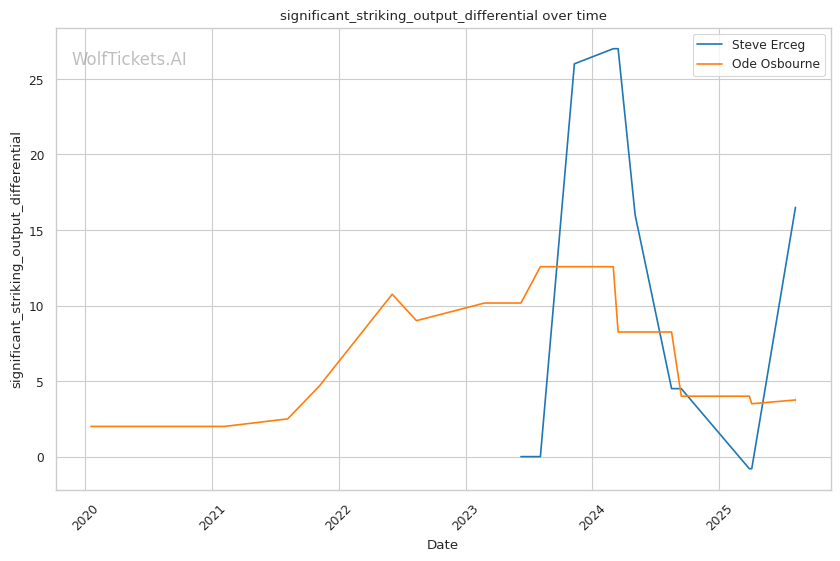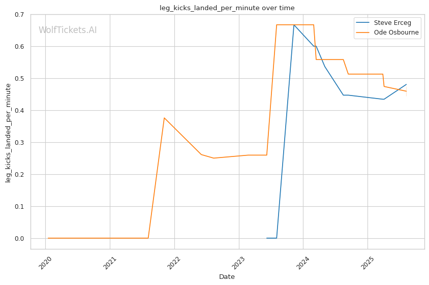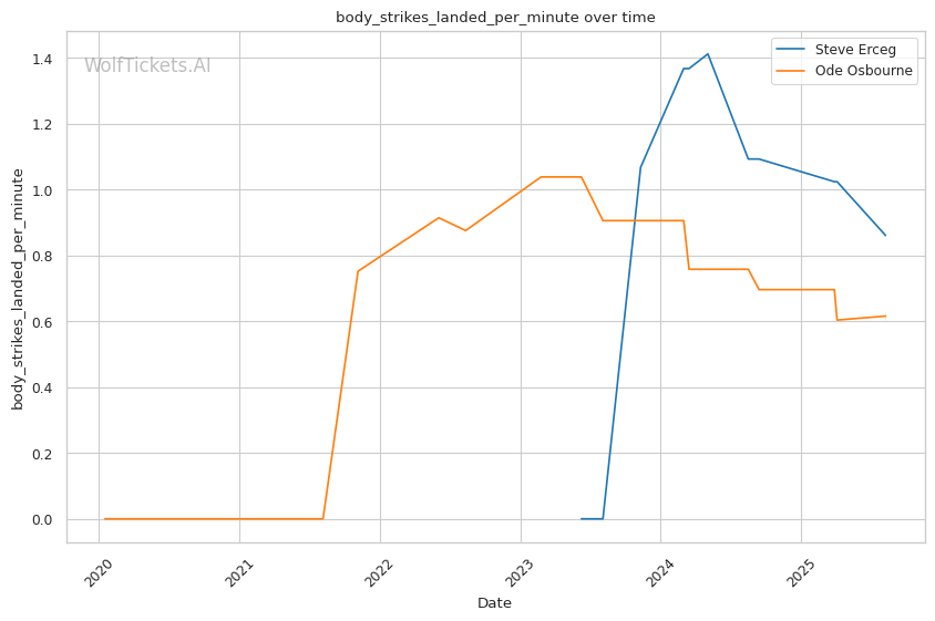 Mid-fight adjustments strongly favor Erceg, whose technical striking becomes more effective as opponents tire. Osbourne's diminishing output after round one creates opportunities for Erceg's methodical pace to take control.