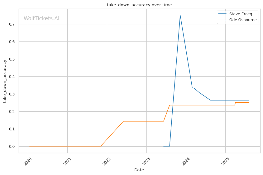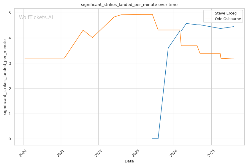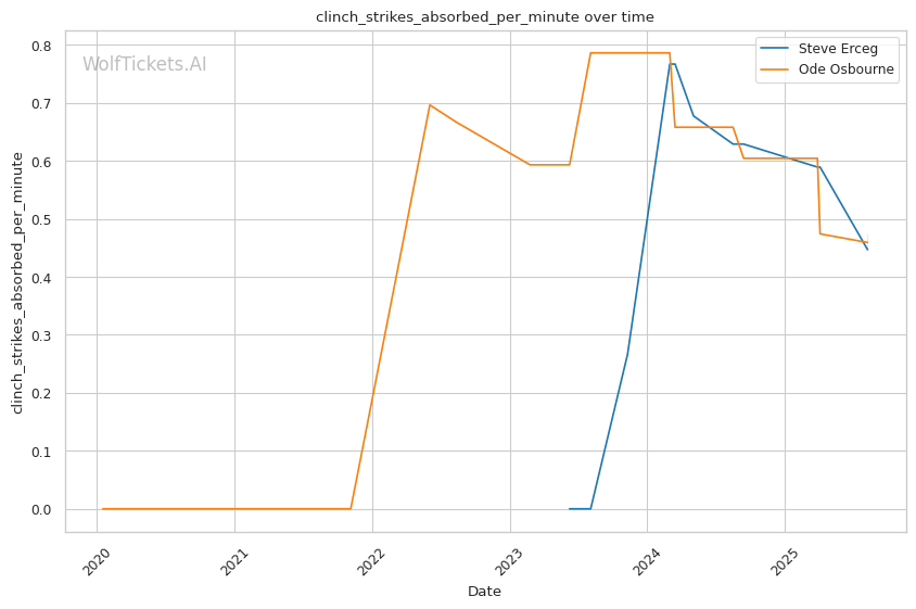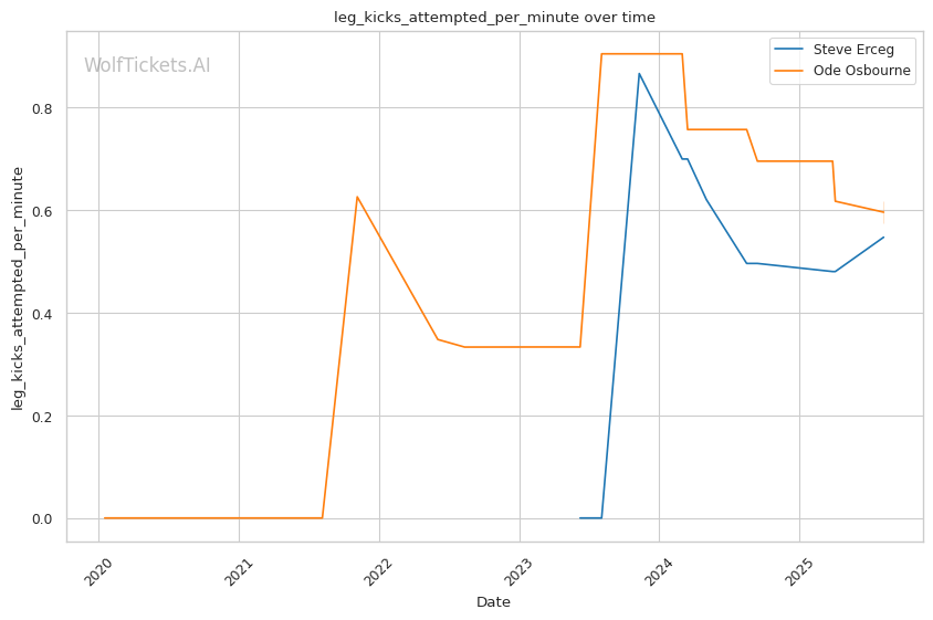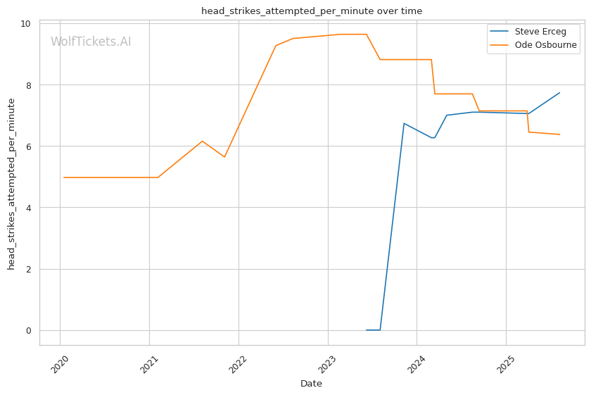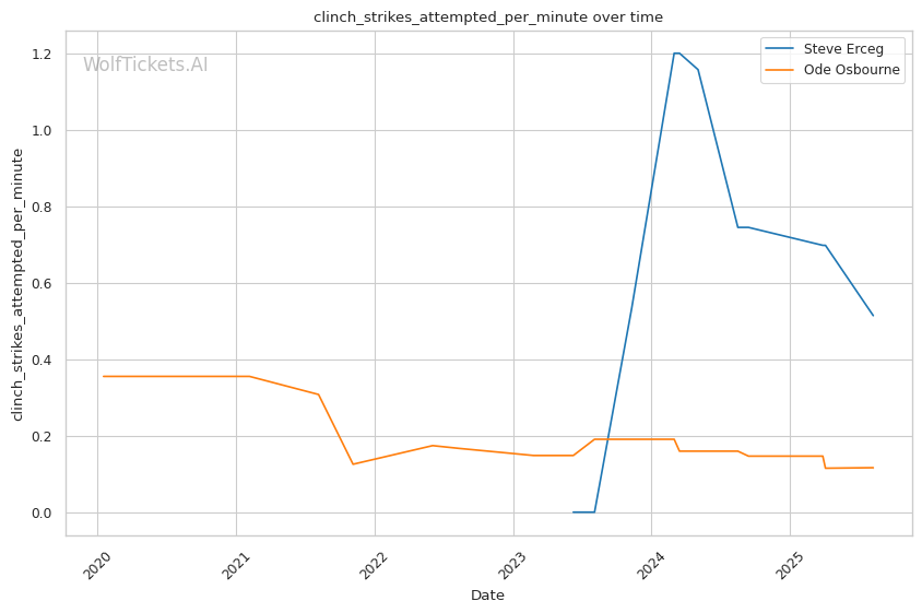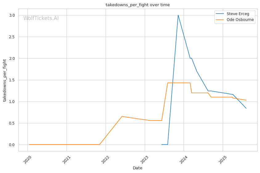 Mid-fight adjustments strongly favor Erceg, whose technical striking becomes more effective as opponents tire. Osbourne's diminishing output after round one creates opportunities for Erceg's methodical pace to take control.
