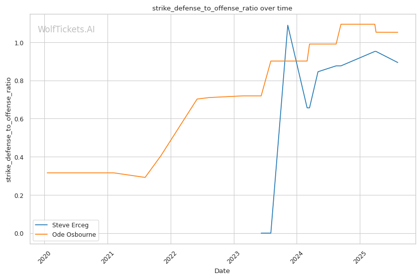 | Significant Striking Defense to Offense Ratio | 99.75% | 107.08% | 114.83% | |