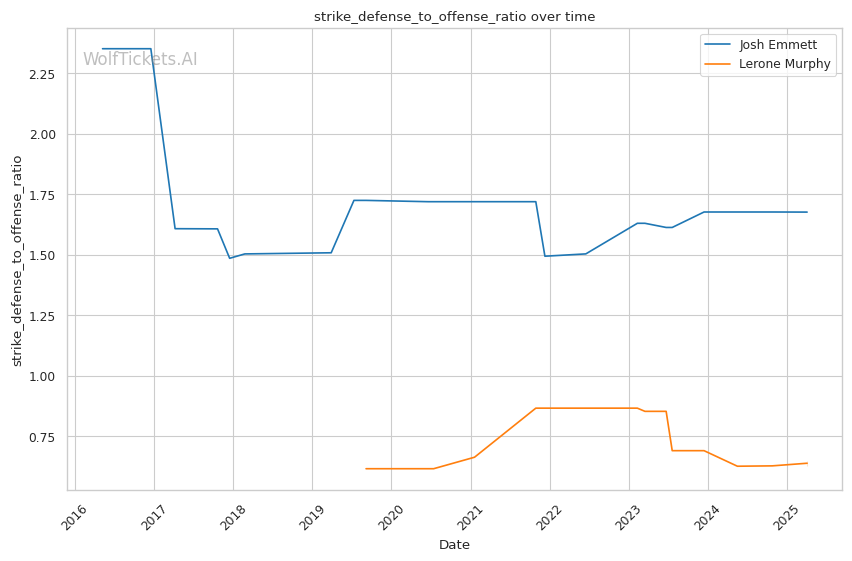 | Significant Striking Defense to Offense Ratio | 180.03% | 83.27% | 104.37% | |