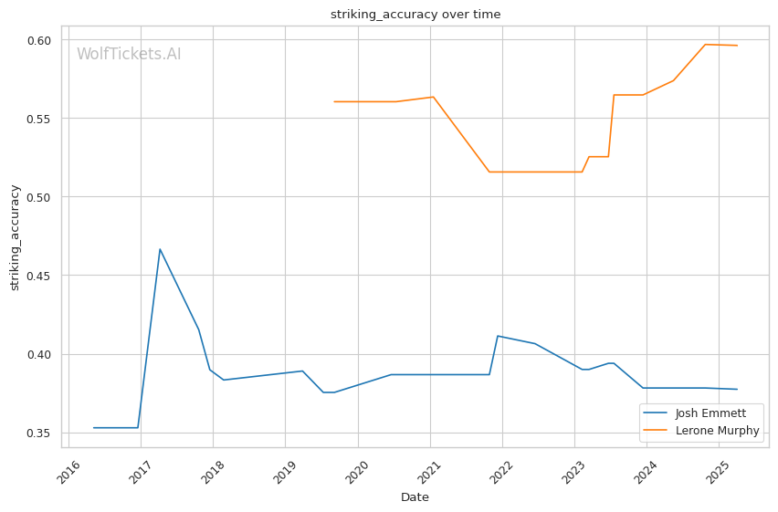 Murphy's technical striking, defensive awareness, and cardio advantage should neutralize Emmett's explosive power. While Emmett always carries one-punch KO threat, Murphy's feinting game and distance management will likely prevent Emmett from landing his big shots. WolfTicketsAI confidently picks Lerone Murphy to remain undefeated with a victory over Josh Emmett.