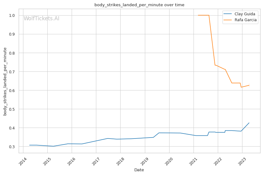 | Body Strikes Landed per Minute | 0.426 | 0.637 | 0.729 | |