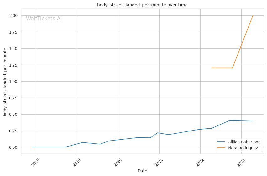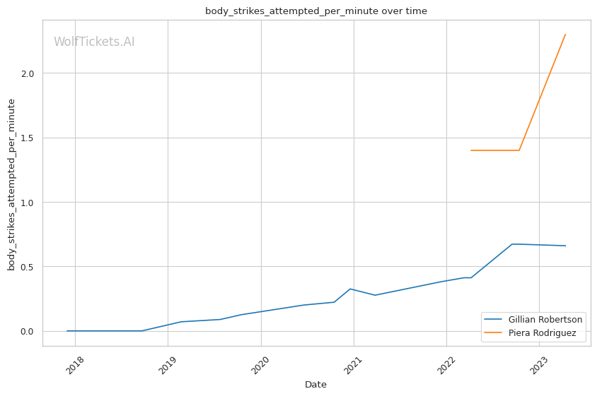 | Stat | Gillian Robertson | Piera Rodriguez | Weight Class Average | |