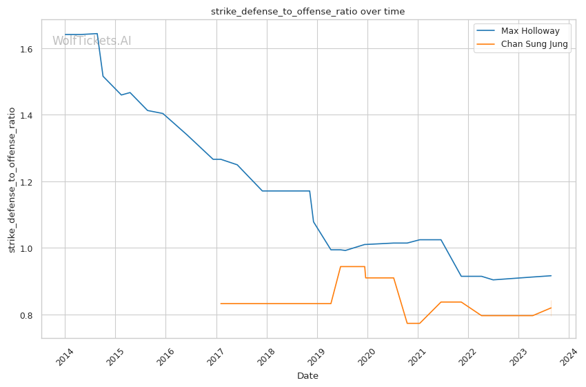 | Striking Defense to Offense Ratio | 91.65% | 84.32% | 85.68% | |