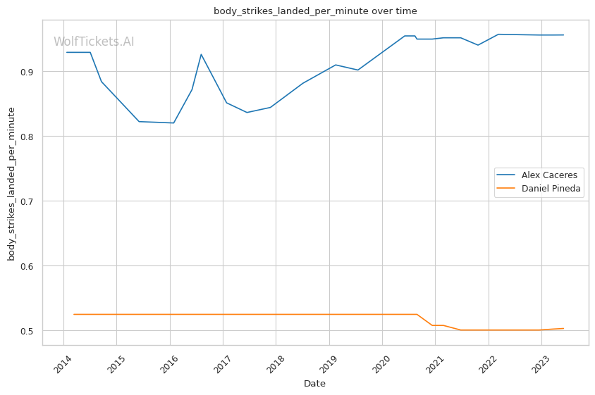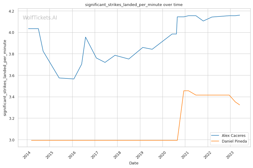| Stat | Alex Caceres | Daniel Pineda | Weight Class Average | |