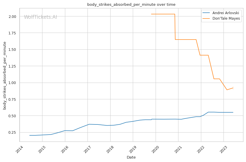 | Leg kicks Absorbed per Minute | 0.600 | 0.623 | 0.643 | |