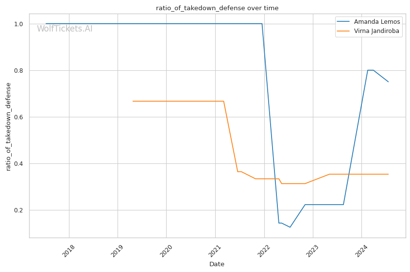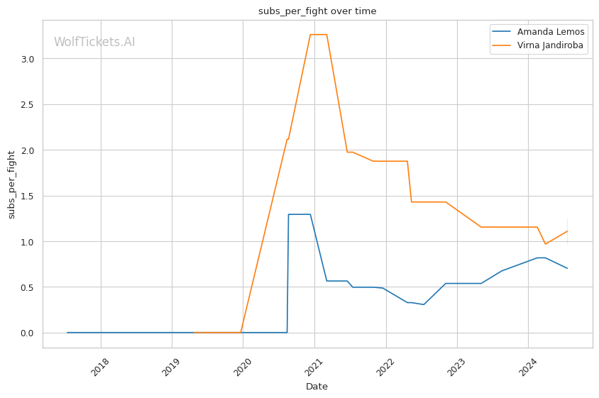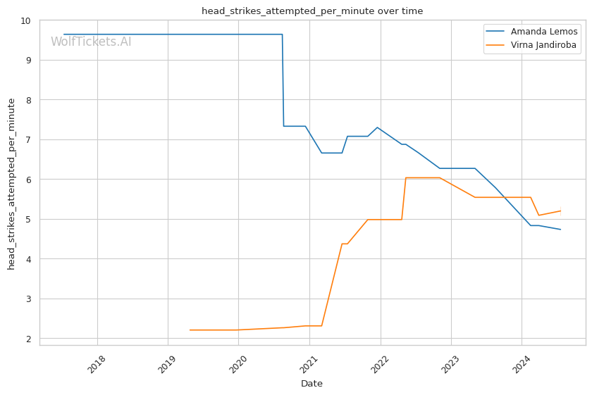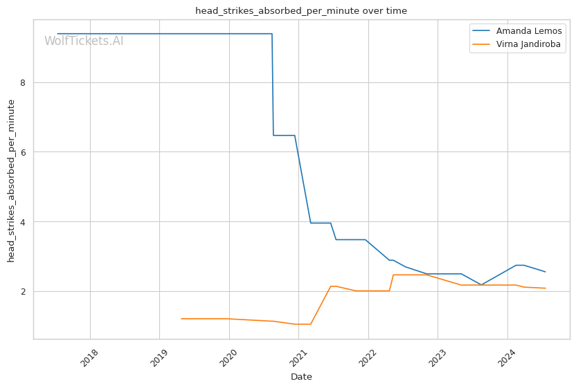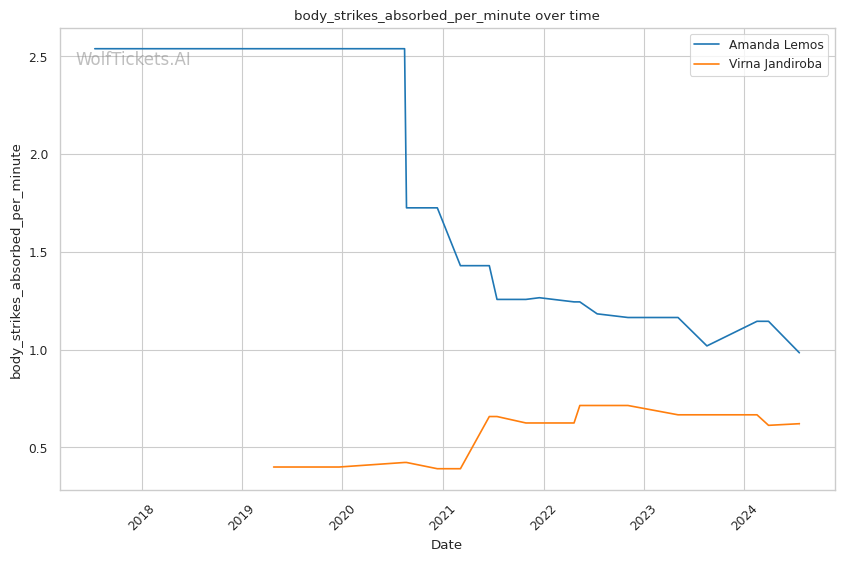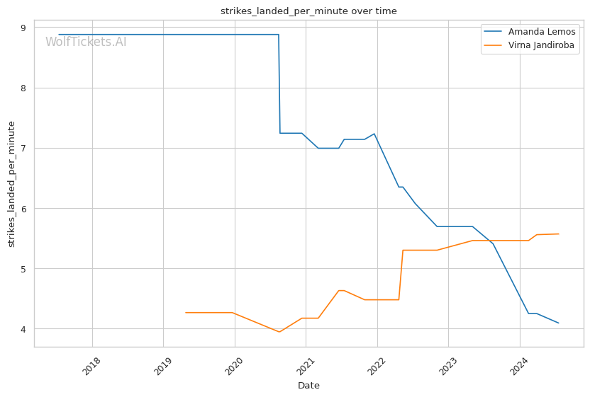 | Stat | Amanda Lemos | Virna Jandiroba | Weight Class Average | |