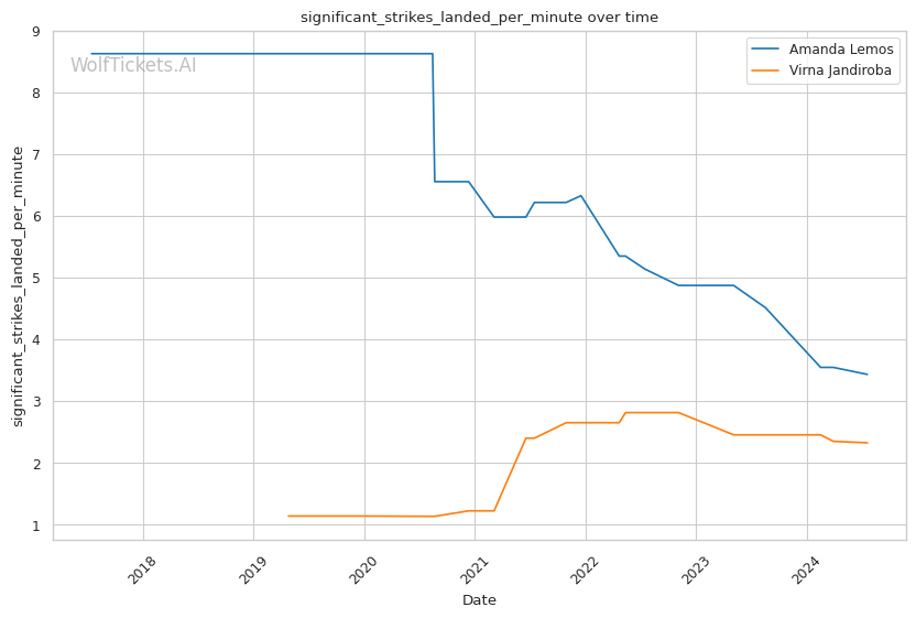 Jandiroba's grappling prowess is reflected in her stats, with 6.53 takedown attempts per fight and a 36.17% takedown accuracy. While her striking numbers may not match Lemos's, Jandiroba has shown significant improvements in her stand-up game, landing 2.30 significant strikes per minute with 38.63% accuracy.
