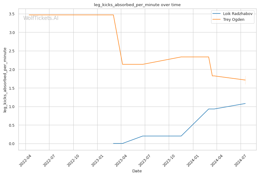 | Leg kicks Absorbed per Minute | 1.077 | 1.599 | 0.563 | |