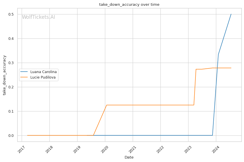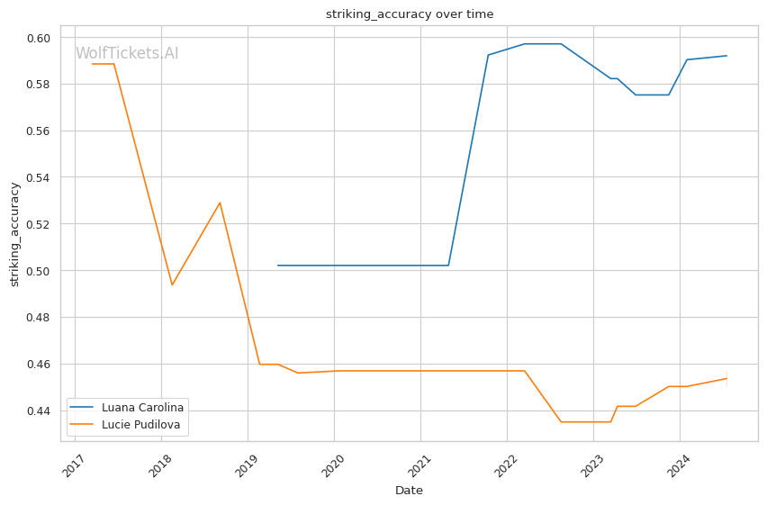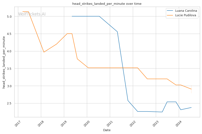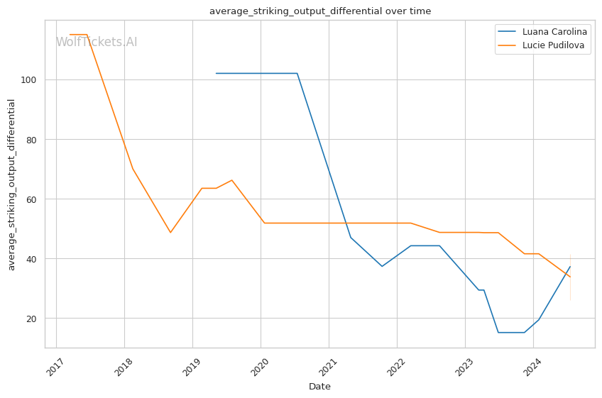 Pudilova's striking output is slightly lower than Carolina's, averaging 3.68 significant strikes per minute with 37% accuracy. However, her striking defense is marginally better at 51% compared to Carolina's 49%. This could be crucial in weathering Carolina's offensive output.
