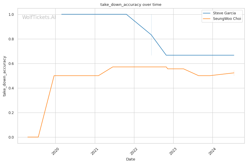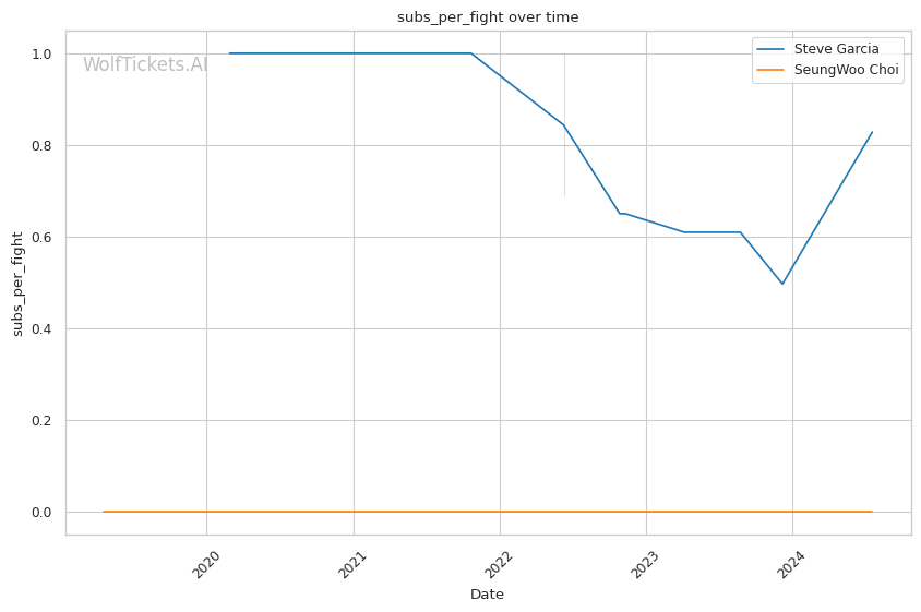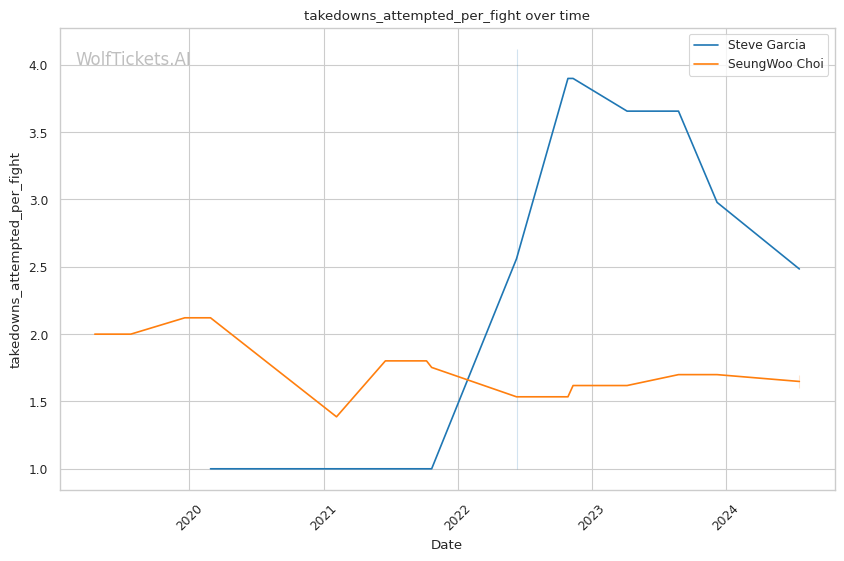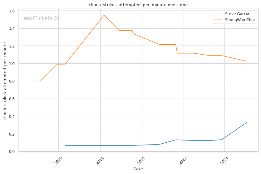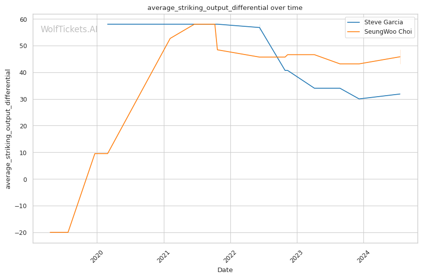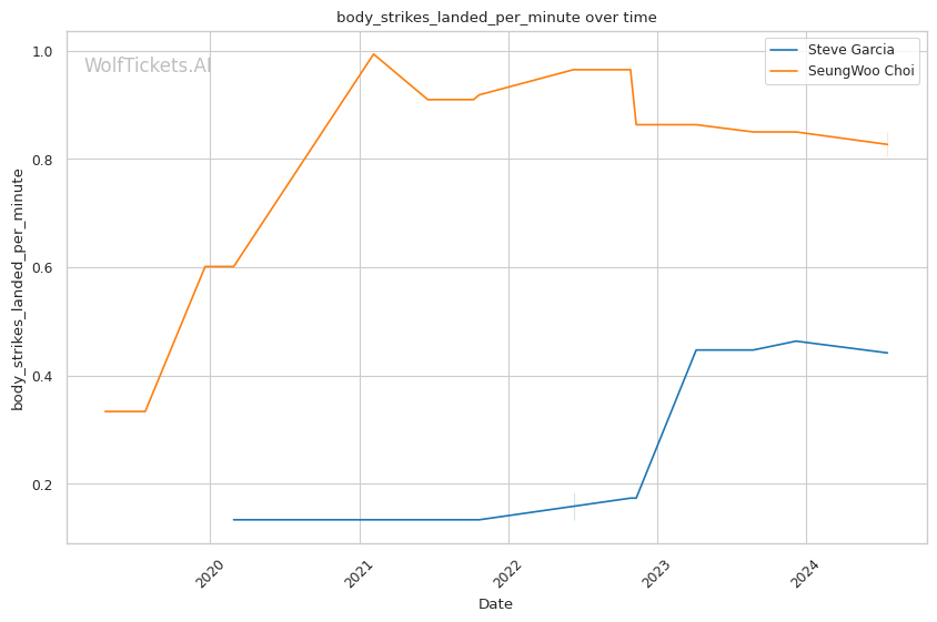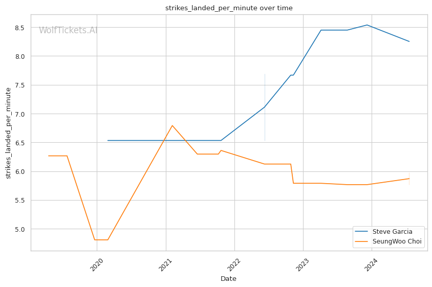 While Choi's striking output is lower than Garcia's, landing 3.48 significant strikes per minute, his accuracy and timing could be crucial. However, his striking defense percentage of 47.12% suggests vulnerability, which could be exploited by Garcia's high-pressure style.