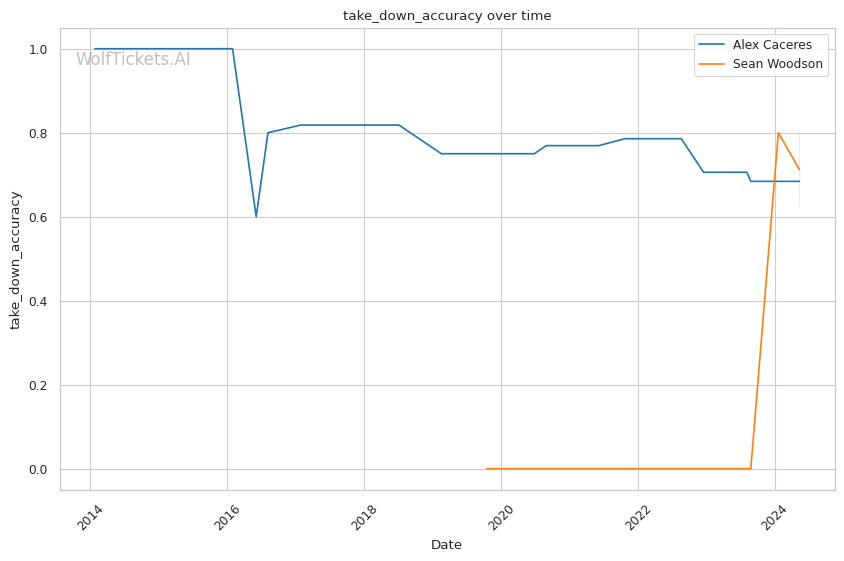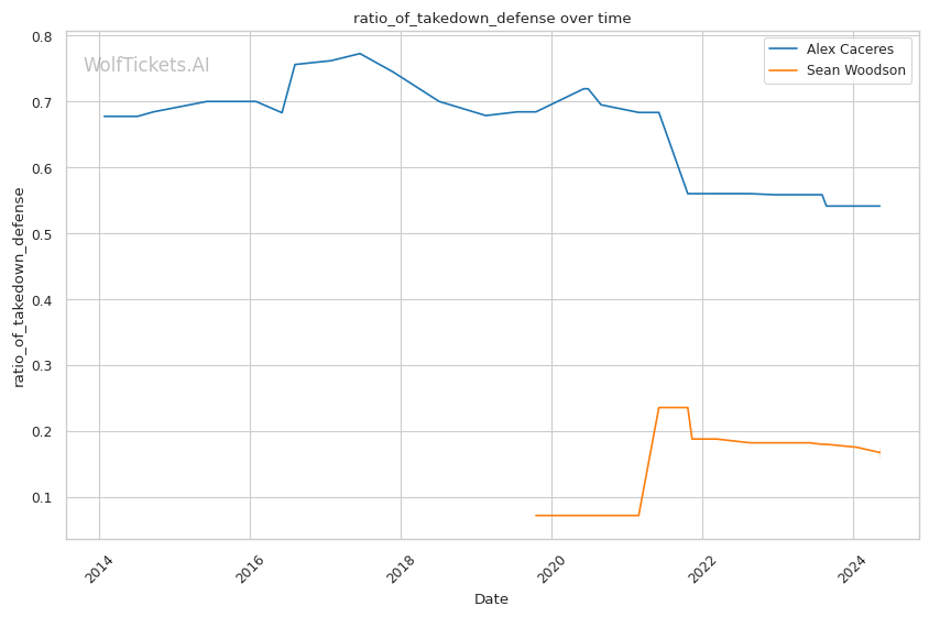Defensively, Woodson is hard to hit cleanly due to his movement and strike avoidance. Opponents have struggled to take him down as well, only landing takedowns on 15% of their attempts against Woodson in the UFC.