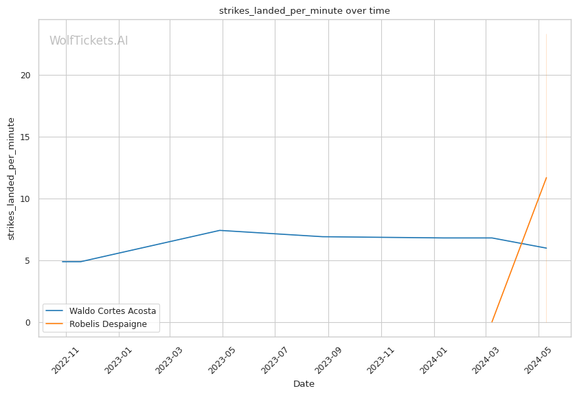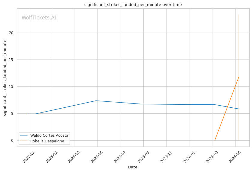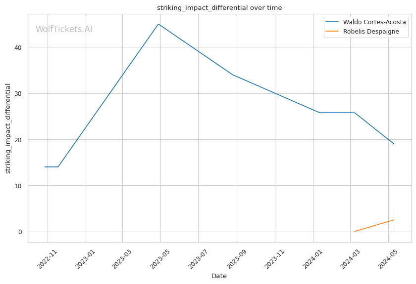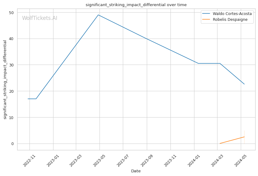 Significant Striking Impact Differential: Despaigne holds a massive edge here, having landed 5.0 more impactful significant strikes per minute than he absorbed in his debut. Cortes-Acosta's differential is 22.6, still very good but well behind Despaigne's mark.