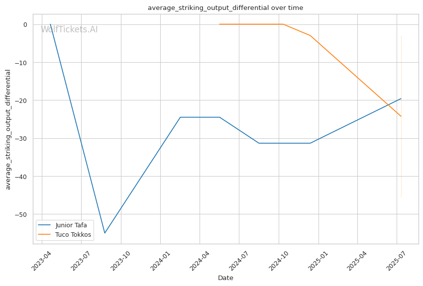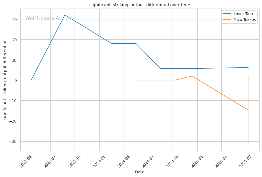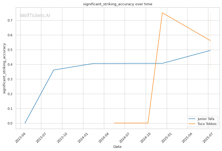 • Power vs. Pressure: Tafa's knockout ability directly counters Tokkos's need to close distance • Ground Game Mismatch: While Tafa's wrestling defense is poor, Tokkos's recent 10.2% takedown accuracy suggests execution problems • Striking Differential: Tafa's 3.36 significant strikes per minute vs. Tokkos's 1.87 shows clear output advantage • Defensive Concerns: Both fighters show defensive vulnerabilities, but Tafa's power makes his more dangerous