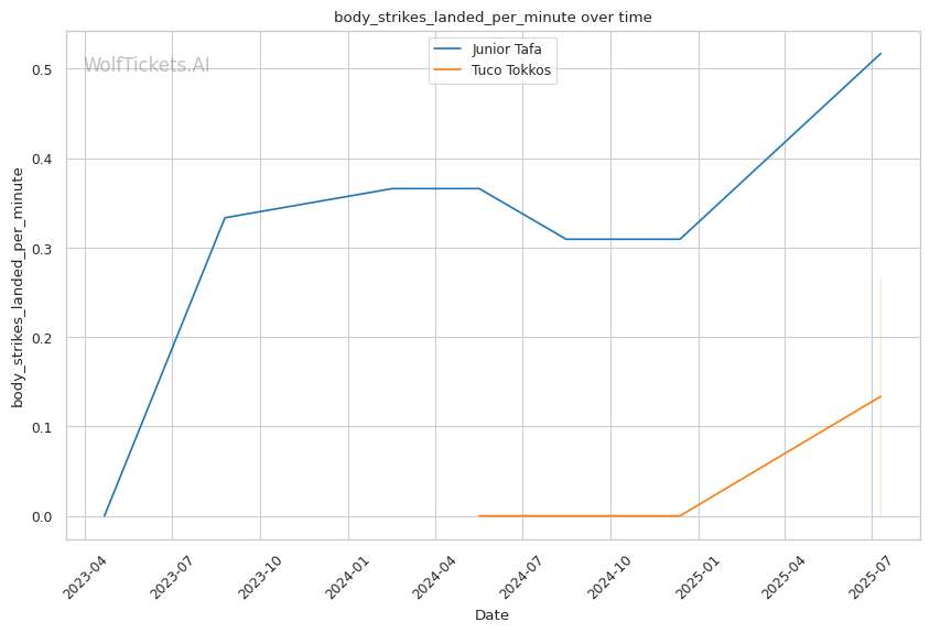 If the fight extends, Tafa's cardio issues become relevant - he admitted he "couldn't feel his legs" in Round 2 against Sharaf. However, Tokkos's own recent struggles and 0% recent win percentage indicate he's unlikely to capitalize on late-fight opportunities even if they arise.
