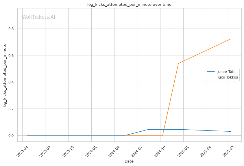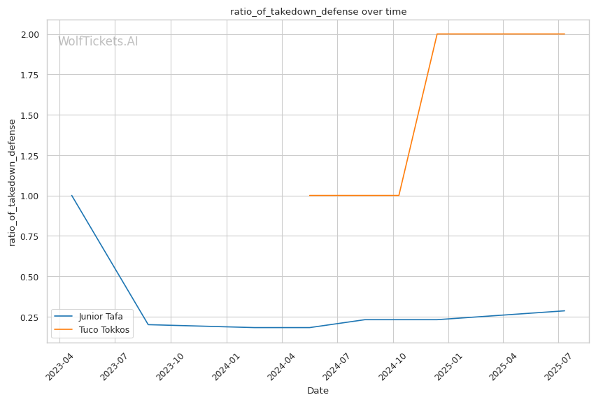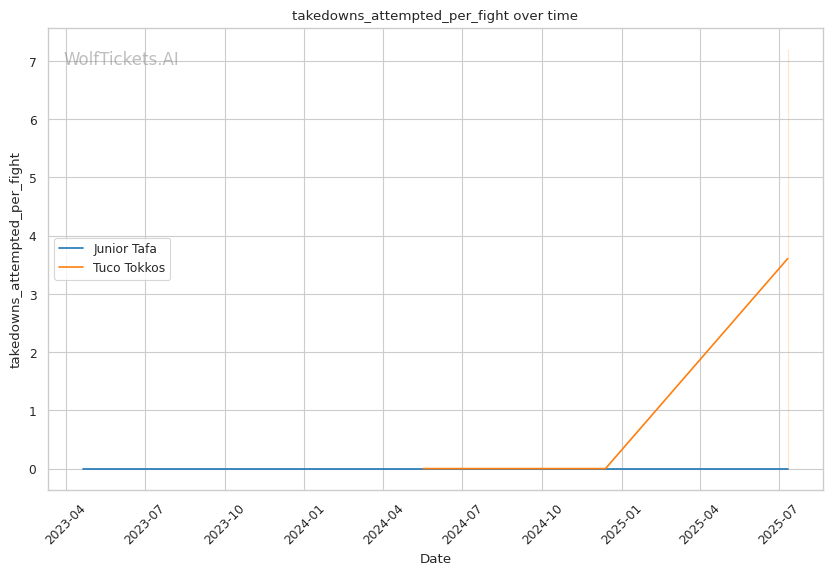 Tafa's defensive wrestling weakness directly plays into Tokkos's primary strength, but the execution gap is significant. Tokkos's declining takedown accuracy suggests he may struggle to capitalize on Tafa's 28.6% takedown defense. However, if Tokkos can implement a calf kick strategy similar to what troubled Tafa against de Lima, he could compromise Tafa's explosive movement and create easier takedown opportunities.