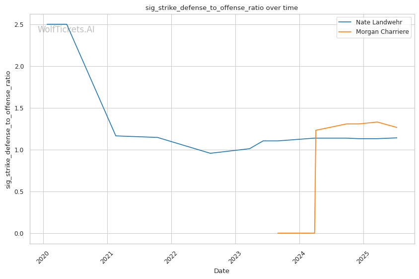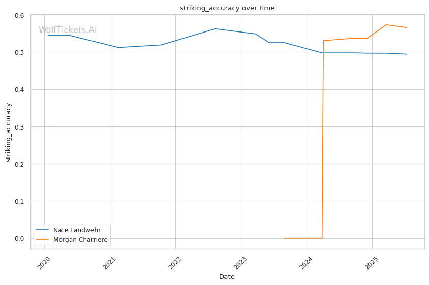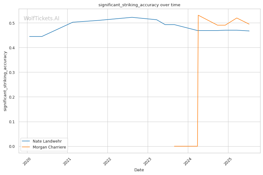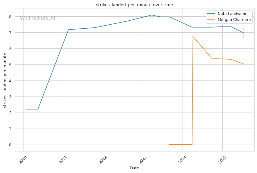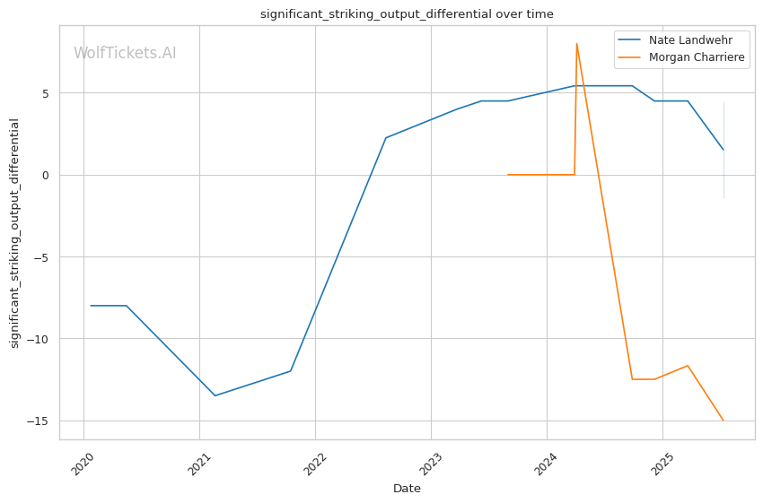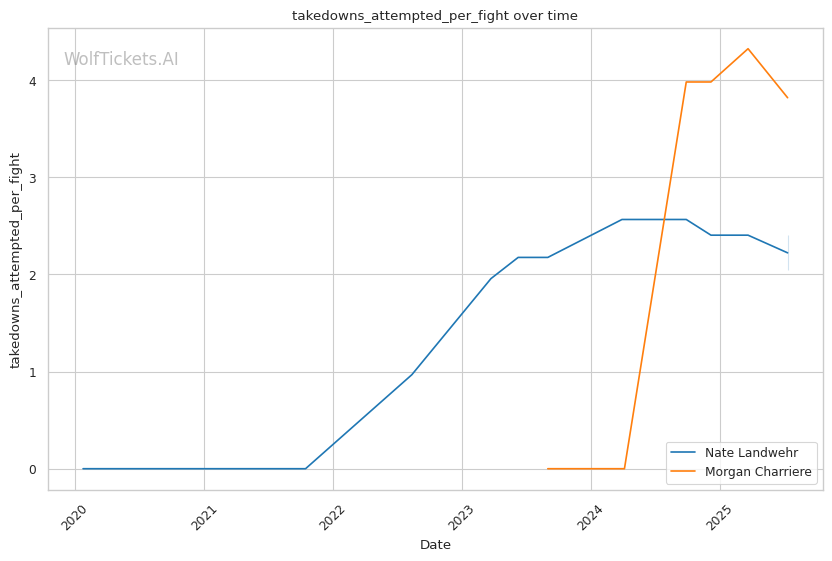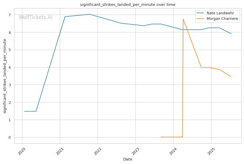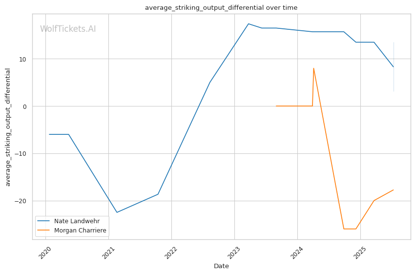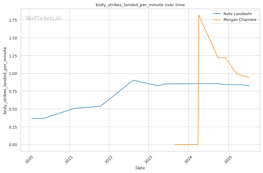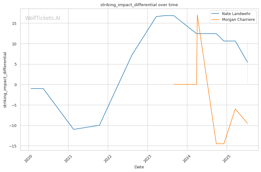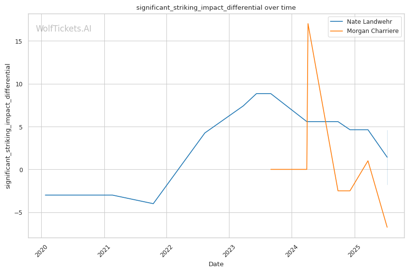 Championship rounds historically favor Landwehr's durability and pressure, but Charriere's body work could compromise Landwehr's cardio if landed consistently early.