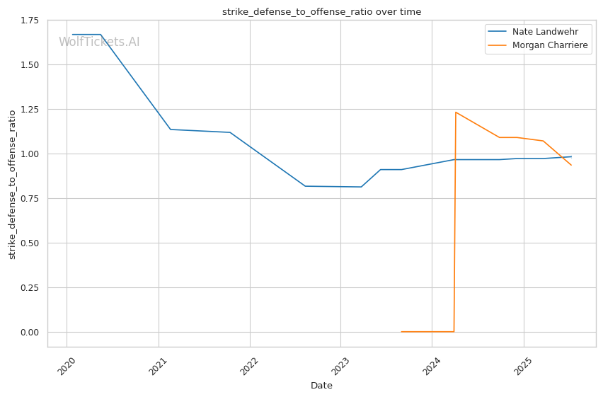 However, Landwehr's relentless pressure could exploit Charriere's limited output management. If Charriere becomes overly selective with his power shots, Landwehr's volume striking (6.25 strikes per minute) could overwhelm him in the scoring columns.