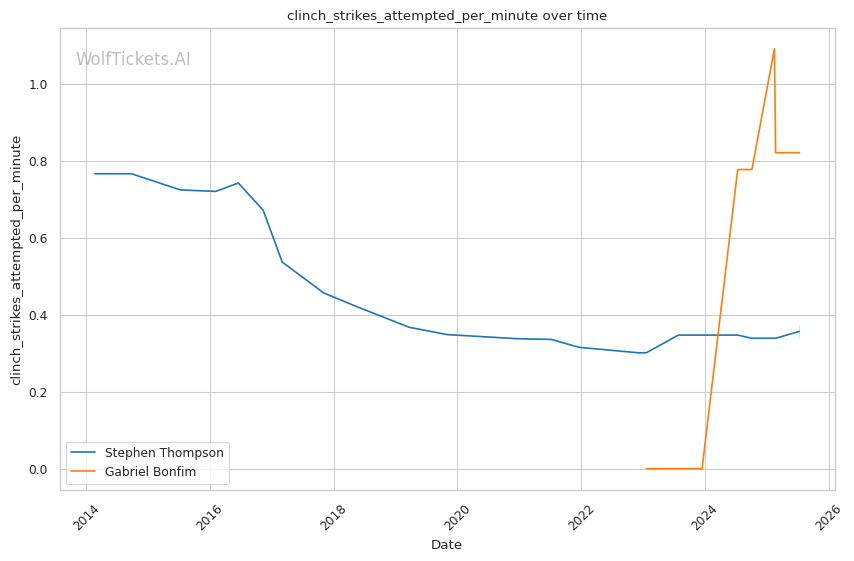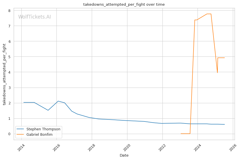 This matchup presents a fascinating technical puzzle. Bonfim's pressure-based approach directly exploits Thompson's most significant vulnerability - his deteriorated fence management. Thompson's tendency to back straight to the fence rather than circling plays directly into Bonfim's takedown-heavy gameplan.