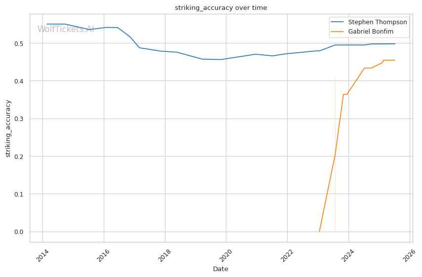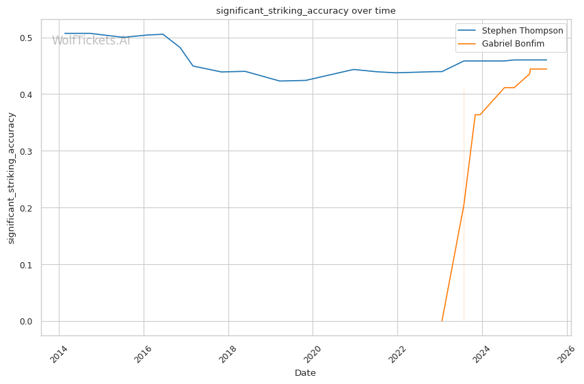 | Significant Striking Accuracy | 46.03% | 44.42% | 44.25% | |