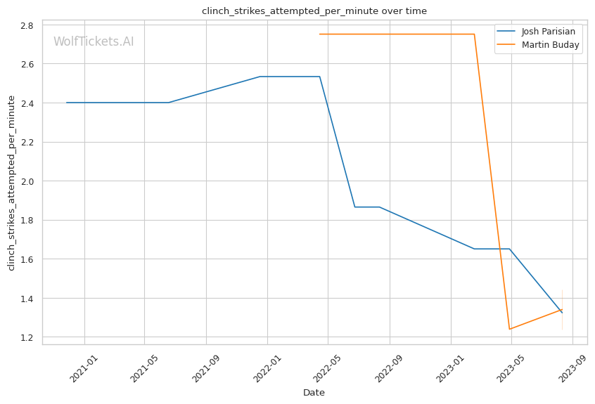 | Clinch Strikes Attempted per Minute | 1.323 | 1.441 | 0.816 | |