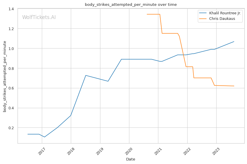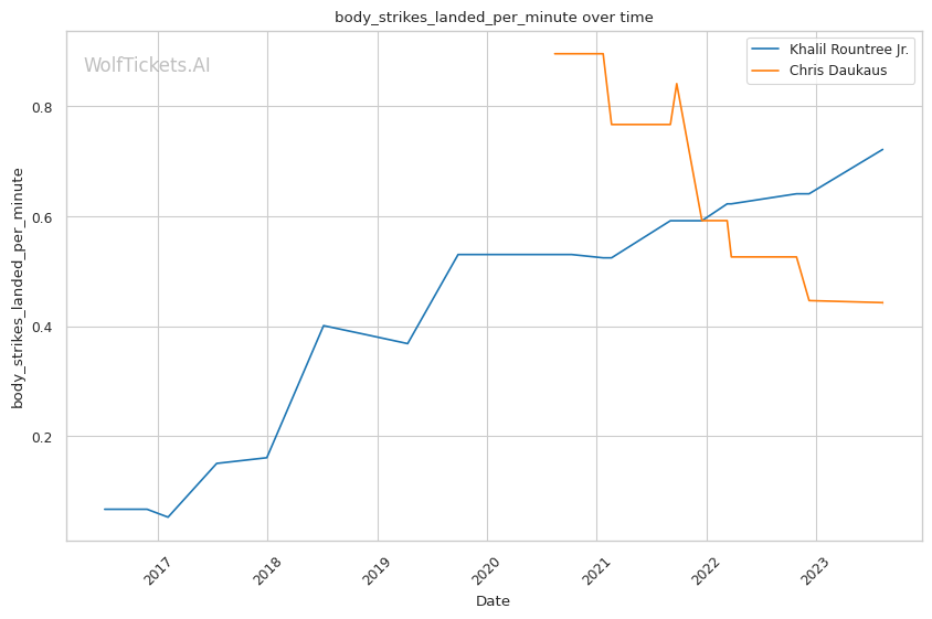 | Stat | Khalil Rountree Jr. | Chris Daukaus | Weight Class Average | |