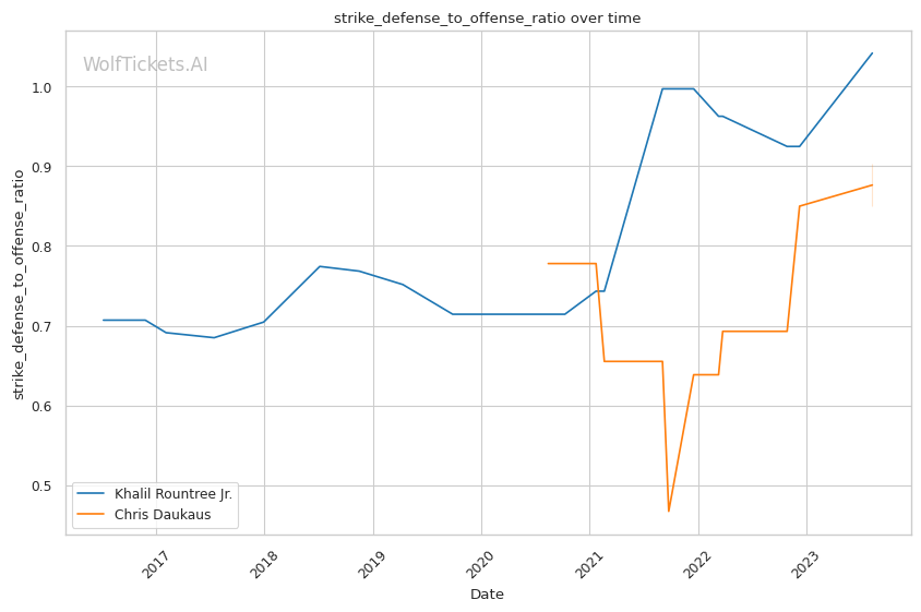 | Striking Defense to Offense Ratio | 104.14% | 90.26% | 74.89% | |