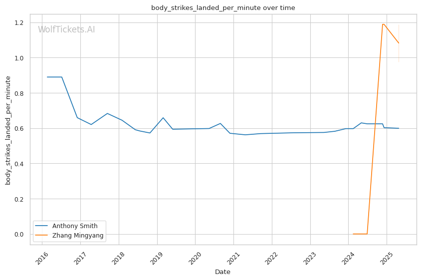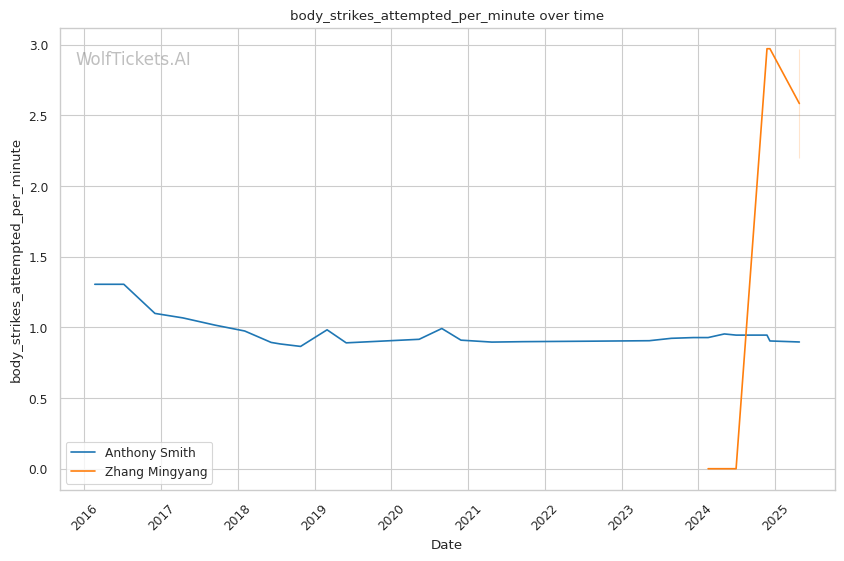 Power Discrepancy: Zhang's knockout power is the clear x-factor. Smith has been stopped by strikes in three of his last seven losses, showing increasing vulnerability to power punchers.